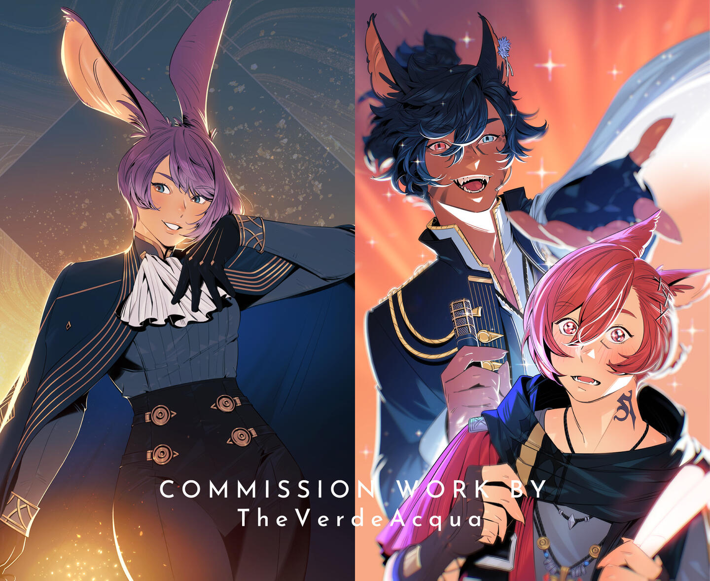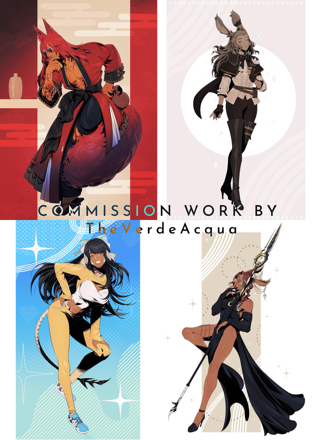 🕺 FULL BODY - 200€ ( +100€ per extra character )If a design/weapon/prop/etc is particularly complex an additional fee may be charged.Previous Works in this style: